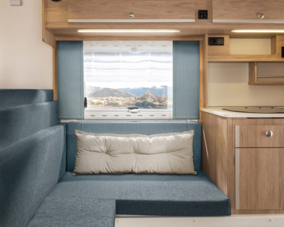 In addition to mobile living comfort on the road, the aesthetics and individual coherence of the interior design also contribute to the fun of traveling. With this in mind, TISCHER customers can be inspired by various trendy colors as well as several upholstery and curtain fabrics. The Lagona, Limea, Delio, Dimaro and Savaro fabric designs cover a wide range of colors and styles. Even more individuality can be created in the cabin interior through the structure of the curtains, as timeless blinds and over-curtains or in a very modern way as panel curtains and Roman blinds.