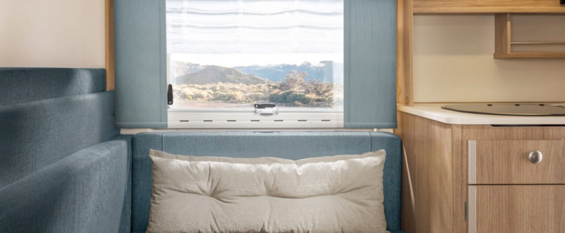 In addition to mobile living comfort on the road, the aesthetics and individual coherence of the interior design also contribute to the fun of traveling. With this in mind, TISCHER customers can be inspired by various trendy colors as well as several upholstery and curtain fabrics. The Lagona, Limea, Delio, Dimaro and Savaro fabric designs cover a wide range of colors and styles. Even more individuality can be created in the cabin interior through the structure of the curtains, as timeless blinds and over-curtains or in a very modern way as panel curtains and Roman blinds.