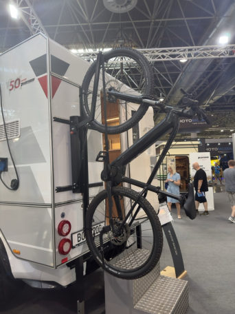 Mit dem eigenkonstruierten Fahrradträger neben dem Heckeinstieg entsprechender Kabinenmodelle macht TISCHER den Kunden ein neues Zubehör-Angebot. Lieferbar ab Februar 2025, UVP EUR 1.450,-.