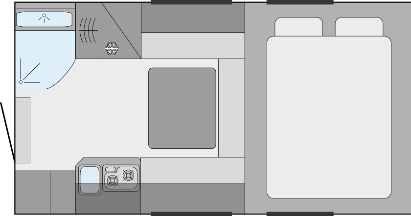 Die Serie entwickelt sich weiter und so sind nun die Trail/Box 280/280S Kabinen für T4, T5 und den neuen T6 erhältlich. Beide Varianten zeichnen sich bei einer Stehhöhe von 2,03 m durch jede Menge Platz und Komfort für vier Personen aus. Mit einer funktional ausgestatteten Küche und vollständigem Badezimmer bleiben auch auf längeren Reisen kaum Wünsche offen.