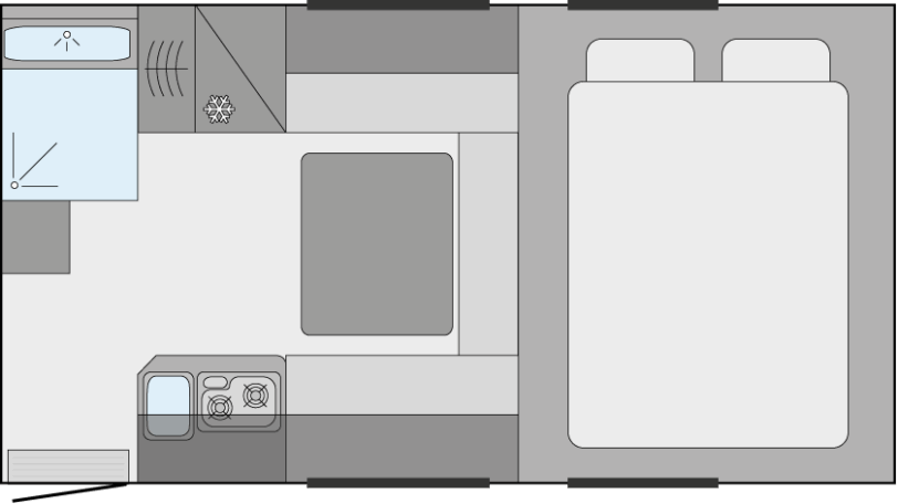 - Stauraum für zwei 11 kg-Gasflaschen, von außen zugänglich